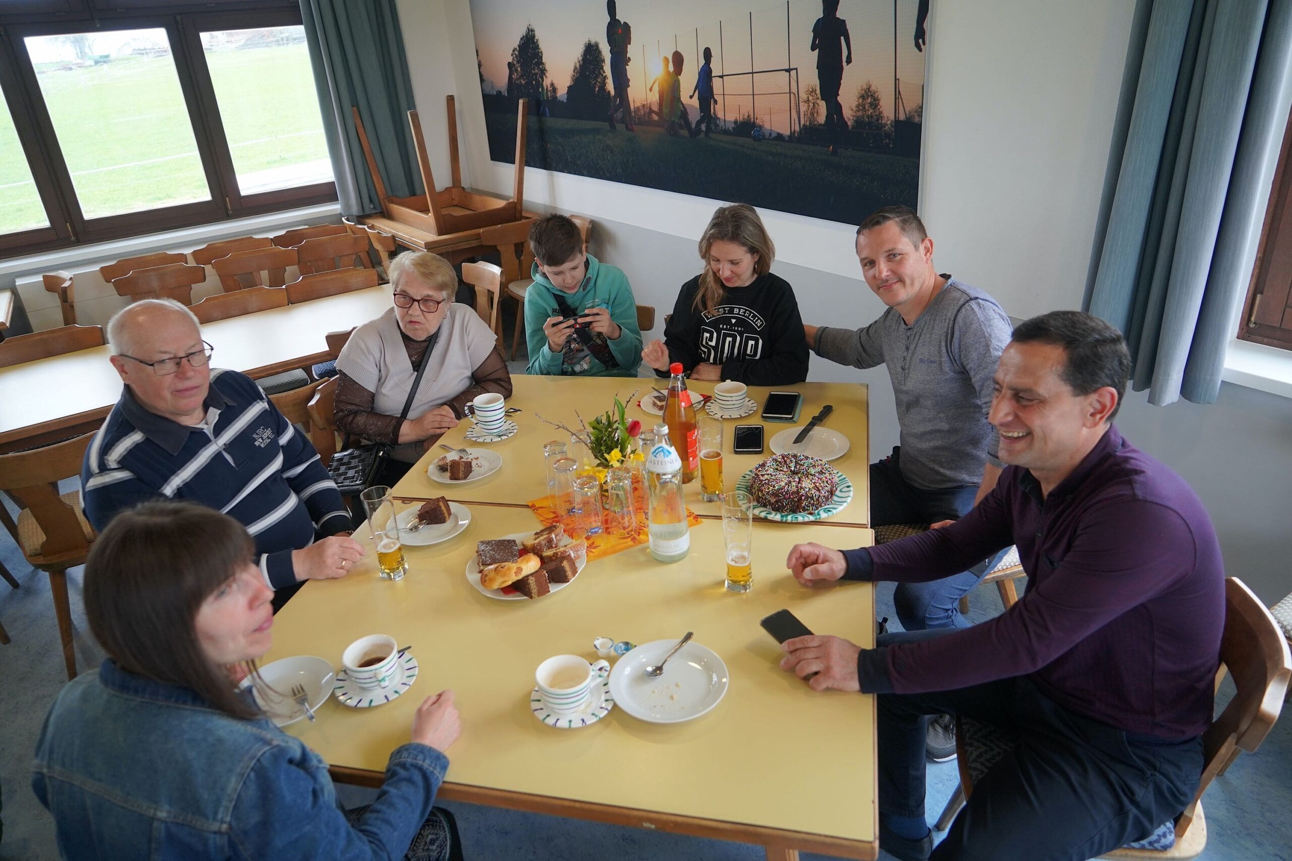 Der Zufall wollte es an diesem Nachmittag so, dass ein Ukrainer seinen 41. Geburtstag beging und mit einer kleinen Torte überrascht wurde. Durch seine Gehörlosigkeit ist er vom Kriegsdienst in der Heimat befreit. Das Zusammensein in diesen herausfordernden Zeiten tat allen Anwesenden unglaublich gut und manche Kontakte miteinander wurden weiter vertieft und intensiviert.